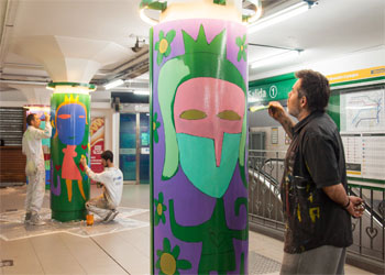 Además, el artista intervendrá dos paneles semicirculares que se colocarán sobre las arcadas de las escaleras mecánicas sobre una superficie de 3 metros por 1,8 metros de largo.