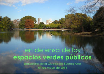 En el Salón Montevideo de la Legislatura porteña, el dia miércoles 7 de mayo a las 18:00 horas se realizara un encuentro en defensa de los espacios verdes públicos, organizado por Queremos Buenos Aires, invitan a ONGs y asociaciones vecinales, a organizaciones sociales y vecinos independientes, a defensores del espacio público de la Ciudad y el Gran Buenos Aires, a participarpor la preservación del paisaje y los usos para los que fueron creados, según manifiestan ante la emergencia urbana, ambiental, social y patrimonial del Área Metropolitana Buenos Aires.