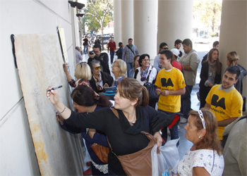 En la tarde de ayer, la Catedral Metropolitana reunió a cientos de personas que se acercaron a firmar el tapiz que será entregado al Papa Francisco con motivo de cumplirse un año de su pontificado.