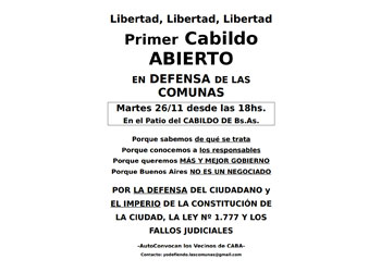 Te convocamos a acompañar la movilización del 1er Cabildo Abierto en el patio del Cabildo de la Ciudad de Buenos Aires el martes 26 de noviembre de 2013 a las 18hs.