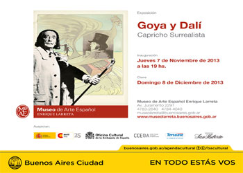 En el Museo de Arte Español, Enrique Larreta, ubicado en Juramento 2291, de la Ciudad Autónoma de Buenos Aires, se inaugura el 7 de noviembre a las 19:00 horas "Goya y Dalí. Capricho surrealista", la muestra es posible gracias a la colaboración de la Dirección General de Museos, de la Embajada de España, del coleccionista que cedió sus obras y sobre todo, es el resultado del trabajo entusiasta y profesional de las diversas áreas del museo.