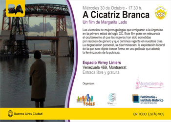 El miércoles 30 de octubre, a las 17:30 horas, se proyectara en el Espacio Virrey Liniers, Venezuela 469, de la Ciudad Autónoma de Buenos Aires, la película "A Cicatriz Branca" un film de Margarita Ledo.