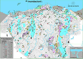 Está conformado por un mapa de la ciudad de Buenos Aires que indica la posición y el accionar que asumen diversos actores ante una serie de "inesperadas posibilidades urbanas para Buenos Aires", que incluyen el desborde de los principales ríos que la atraviesan y su consecuente inundación.