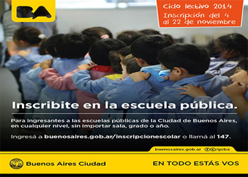 Del 4 al 22 de noviembre, las familias podrán inscribirse para el ingreso a la escuela pública 2014 en todos los niveles: inicial, primario, secundario y terciario, en cualquier modalidad.