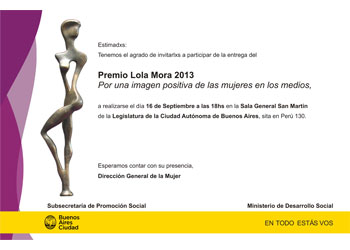 El 16 de septiembre se entregarán los Premios Lola Mora