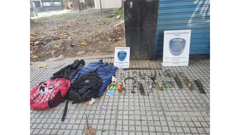 Como resultados de las actuaciones policiales se encontraron en el interior de la mochila del detenido 22 piezas metálicas de bronces, entre picaportes y manijas fijas, dos cuchillos tipo “tramontina”, un destornillador Phillips, y un frasco que contenía una sustancia similar a picadura de marihuana.