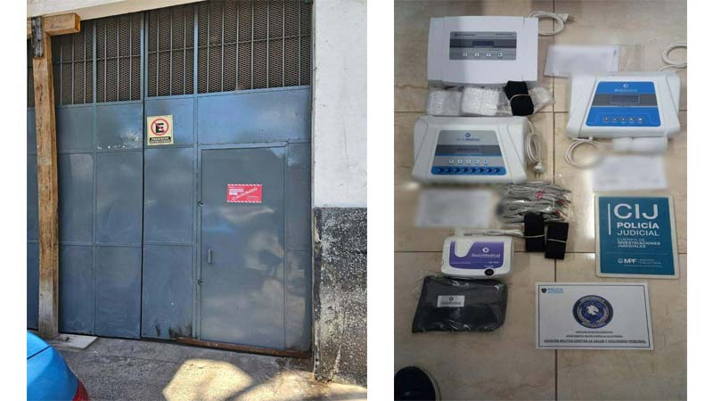 Al ingresar, los efectivos verificaron que los productos médicos hallados (micro-dermoabrasión, electroporador, ultracavitador, radiofrecuencia y estimuladores) no estaban habilitados para su comercialización, resultando un peligro para la salud de los usuarios.