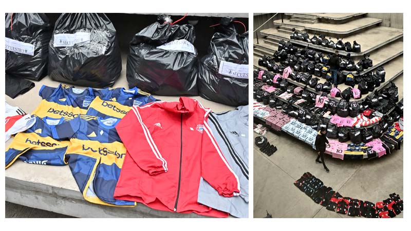 Entre las prendas secuestradas hay una gran cantidad de remeras y equipos de fútbol del Inter Miami, que actualmente utiliza Lionel Messi.