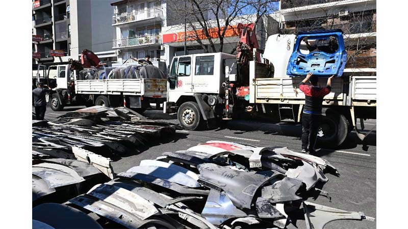 En el inventario realizado se constató el hallazgo de una caja trasera cortada de camioneta Toyota Hilux, una tapa de baúl de Toyota SW4, un motor de Renault Laguna, un tren trasero, 85 capots, 80 ópticas, 25 puertas baúl, 45 guardabarros, 550 paragolpes y 675 puertas, todas usadas y sin sticker de RUDAC que permita determinar su procedencia o trazabilidad.