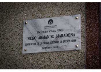En la tarde de ayer los legisladores de PRO, Roberto Quattromano y Cristina García De Aurteneche, descubrieron esta tarde una placa en la vivienda de La Paternal donde residió Diego Maradona durante su etapa en Argentinos Juniors, en el marco del 40° aniversario de su debut en Primera División. La propiedad se encuentra en Lascano 2257 y actualmente funciona como museo tras haber sido recuperada por la Junta de Estudios Históricos de los barrios de La Paternal y Villa General Mitre.