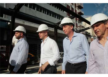 Durante la recorrida que realizo ayer el jefe de Gobierno Horacio Rodríguez Larreta, junto al vicejefe de Gobierno, Diego Santilli, a la obra del nuevo Metrobus San Martín, que conecta las avenidas Juan B. Justo y General Paz, anuncio que será inaugurado en abril próximo junto con el paso bajo nivel del ferrocarril Urquiza.