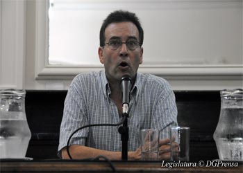 Foto: El diputado Marcelo Ramal organizador del encuentro a favor del derecho a la vivienda.