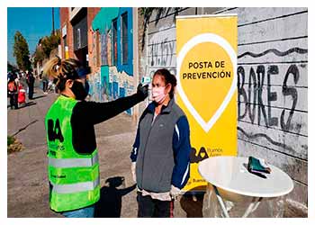 El Ministerio de Desarrollo Humano y Hábitat instaló Postas de Prevención en barrios vulnerables para detectar potenciales casos de COVID-19 midiendo la fiebre y otros síntomas a los vecinos. Desde el lunes, los barrios 21.24, Padre Ricciardelli (1.11.14) y Barrio 31 cuentan con postas de prevención para que los vecinos puedan tomarse la temperatura y evaluar otros síntomas para detectar posibles casos de COVID-19. Las postas funcionan también como puntos de difusión de las medidas de prevención y acciones necesarias para combatir el coronavirus.
