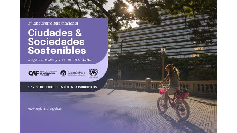 La Legislatura de la Ciudad, en conjunto con la Cooperación Andina de Fomento el Banco de Desarrollo de América Latina y el Caribe (CAF) y la Organización de Naciones Unidas (ONU)–Hábitat, realizará la primera edición del encuentro internacional “Ciudades y sociedades sostenibles”. Bajo el lema: “Jugar, crecer y vivir en la Ciudad”, se trabajará sobre los desafíos y las oportunidades que permiten construir entornos urbanos más sostenibles, inclusivos y resilientes.