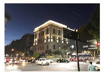 La puesta en valor de esta fachada comprende el retiro de todos elementos no originales, la limpieza de las mismas y la posterior recuperación de la terminación símil piedra. También se realizan tareas de reconstitución de cornisas, frontis, balaustradas, buñados y elementos ornamentales como los capiteles jónicos que rematan las pilastras o los modillones del cornisamento.