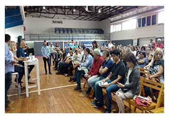 Estuve presente el tema del proyecto de la playa de acarreo de vehículos frente a la plaza de la estación Pueyrredón, que los vecinos no quieren, justo frente a un lugar donde los chicos juegan, un lugar donde estaban proyectadas viviendas, el pedido de que esto no se realice en Villa Pueyrredón genero el aplauso de apoyo de todos los presentes.
