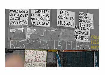 Otro tema que indigna a los vecinos en la falta de respuestas de los funcionarios cuando se les pregunta sobre la construcción todos se hacen los desentendidos, como si recién se enteraran de la situación, falta de dialogo, falta de sinceramiento, y lo peor falta de autorización para edificar en un terreno destinado a una plaza, que los vecinos de la Comuna 12 esperaron durante años.
