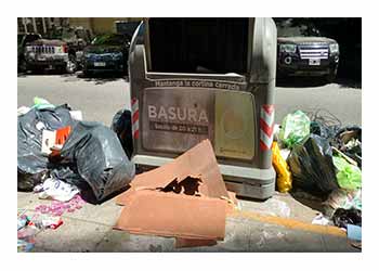 Esperemos que esto no se repita, por suerte la lluvia de esta mañana a favorecido con la limpieza, ya que las bolsas desparramadas tantos días y manipuladas dejaron caer sobre la calzada líquidos de los que se desprendía muy mal olor, el tema de los residuos domiciliarios se ordeno bastante en los últimos años, sobre la ley de basura cero todavía se discute bastante al respecto.