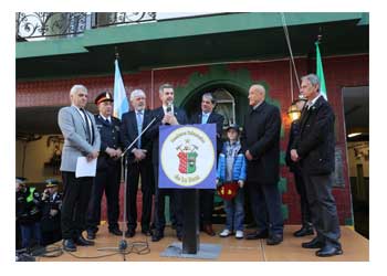 Por su parte, Milanesi condecoró como Comandante Honorario de Bomberos de La Boca a Marcos Peña entregándole un casco y el respectivo reconocimiento.