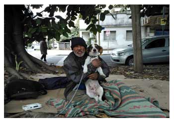 La mayoría de la gente que se encuentra en situación de calle esta acompañada de un o varios perritos, los cuales le brindan su calor en las noches frías, que los siguen a todos lados y no los abandonan pese a la indigencia en la que viven juntos.