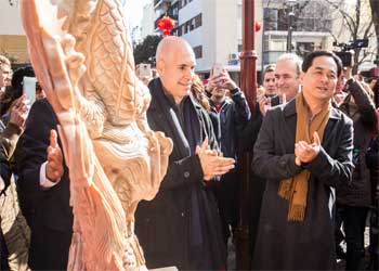 El jefe de Gobierno porteño Horacio Rodríguez Larreta, inauguró esculturas en el Barrio Chino, participaron del evento el embajador de China en Argentina, Yang Wanming, el vicejefe de Gobierno Diego Santilli, el ministro de Ambiente y Espacio Público de la Ciudad, Eduardo Macchiavelli, y el diputado Yuan Jian Ping.
