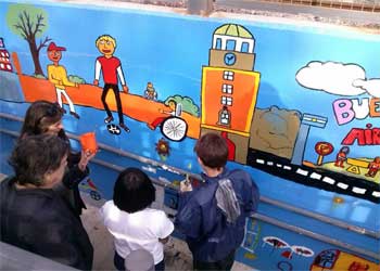 Los alumnos de las Escuelas Primarias Nº 1, 2, 4, 15, 21, 24, 26 y 27 del Distrito Escolar Nº15 bajo la supervisión de sus docentes y coordinadores pertenecientes a distintos organismos educativos, junto a los miembros de la Junta Comunal 12 participaron de la iniciativa creada desde la Dirección de Antropología Urbana, la Subsecretaria de Proyectos y el MDUYT que incentiva la participación de la comunidad educativa y sus alumnos en el diseño y desarrollo de su creatividad para darle vida a los muros de nuestra Comuna, en el Paso Bajo Nivel Holmberg, una buena propuesta para cuidar y valorar cada rincón de nuestra Comuna.