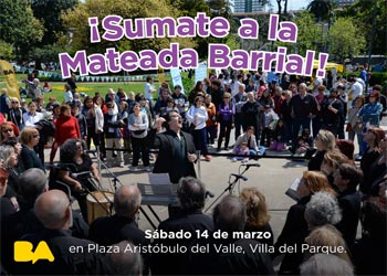 La Mateada de Compromiso Barrial busca promover la participación ciudadana, brindando un espacio donde las organizaciones barriales puedan mostrar lo que hacen y socializar unas con otras, ofreciendo a los vecinos actividades de las que pueden participar. Ésta es la tercera mateada desde que comenzaron los encuentros, la primera fue en Parque Rivadavia y la segunda en Parque Chacabuco.