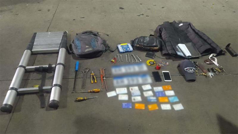 En el interior del auto secuestrado, los oficiales incautaron la escalera plegable, una barreta de 50 centímetros, una llave francesa, un alicate, una pinza universal, dos destornilladores, una pinza pico de loro, seis llaves manuales, una caja, tubos y dos discos de amoladora.