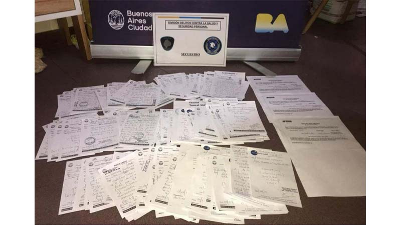 Durante la pesquisa, se secuestraron aptos físicos, prescripciones médicas y certificados laborales. Además, se encontraron 9 recetas de otros médicos, 2 sellos de la mujer, 5 sellos de otros especialistas, talonarios y otros elementos de interés para la causa.