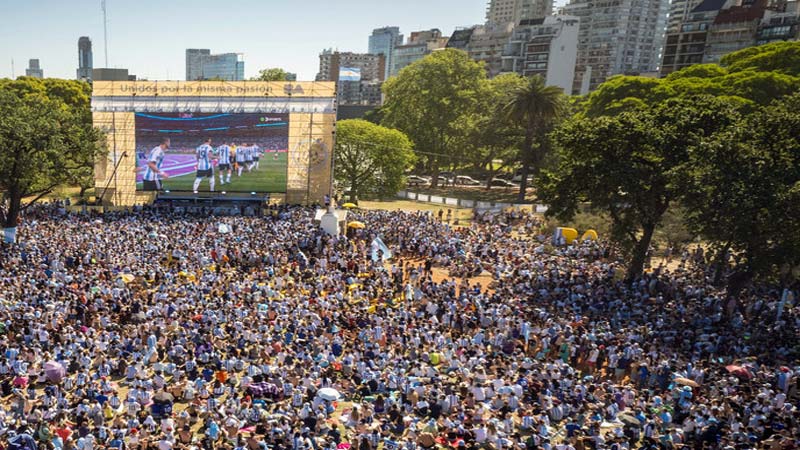 En alianza con la Asociación del Fútbol Argentino (A.F.A.), se generó en ese espacio público de Palermo una plaza temática que ofrece múltiples actividades y su gran atractivo es una gran pantalla (18 x 10,24 metros) en la que se transmiten todos los partidos.