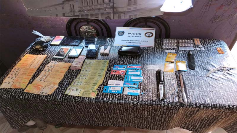 En el lugar, los oficiales detuvieron a la imputada e incautaron ocho teléfonos celulares, 14 chips, una ganzúa, un GPS, un cargador de celular portátil, la suma de 177.500 pesos, dos facas, seis tabletas de Clonazepam, una de Alplax, 14 pastillas de Rivotril, 50.4 gramos de marihuana y 38,1 gramos de burundanga.