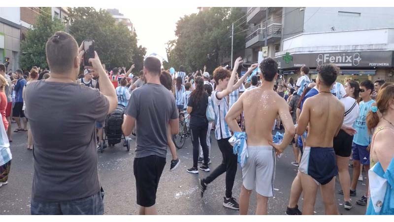 La policía corto el transito ya que la gente se volcó a las esquinas emblemáticas de la comuna, con sus canticos, los vehículos daban vueltas por el barrio haciendo sonar las bocinas, todos felices con el triunfo de la selección argentina, un partido memorable, no solo dicho por nosotros, sino por los comentaristas deportivos de otros países, la actuación del equipo argentino fue impecable, con tres goles uno mejor que el otro, y lo que es una curiosidad es que en la transmisión según la compañía o para quienes los veían por internet, tenia un delay, con lo cual algunos vecinos gritaban antes los goles y otros unos segundos después, lo importantes es que en definitiva todos pudimos gritar los aciertos del equipo.