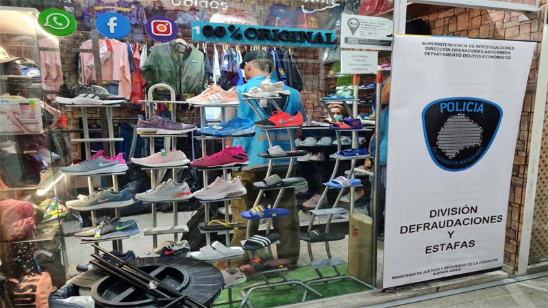 En consecuencia, los oficiales arribaron a la galería ubicada en la calle Bogotá al 2900, y como resultado secuestraron alrededor de 500 pares de zapatillas de marcas falsificadas y más de 300 prendas apócrifas.