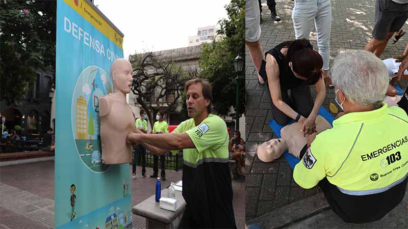 Las charlas y prácticas de RCP son brindadas por instructores de Defensa Civil, mientras que efectivos de Bomberos de la Ciudad están a cargo de actividades lúdicas e interactivas con los más chicos, dando consejos de prevención y actuación frente a situaciones de emergencia.