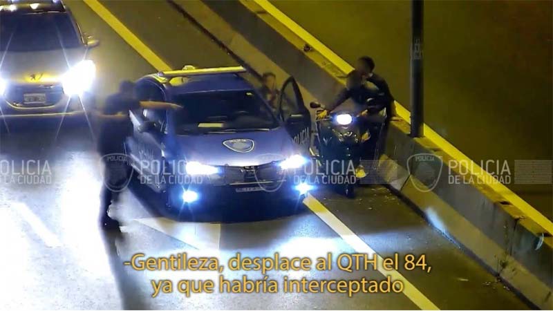 Operadores de la División Anillo Digital alertaron sobre dos masculinos sin cascos que se desplazaban en una moto por la avenida General Paz, sentido al Riachuelo.