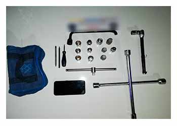 Una vez demorado el rodado en la intersección de la avenida Nazca y la calle Arregui, los efectivos de la Policía de la Ciudad requisaron el rodado encontrando dos ruedas de Peugeot, dos de Chevrolet, una de camioneta Toyota, una llave cruz saca tuercas, tres llaves fijas, cinco tubos de seguridad saca tuercas de diversas marcas y otras herramientas para la extracción de neumáticos.