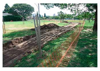 El proyecto en la plaza incluye la traza de numerosos senderos cementizando cada vez más los escasos espacios verdes de la ciudad, incrementando la isla de calor reinante y contribuyendo a las inundaciones. Además, desatiende los reclamos históricos sobre los caminos originales para facilitar el acceso peatonal a Galván, arreglo del patio de juegos y bebederos funcionales, y que se trata de la apertura de un innecesario camino sobre la cubierta verde de la plaza, desde Galván hasta Paroissien.