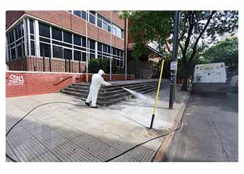 "Ahora con el regreso a la escuela vamos a tomar los cuidados necesarios para la salud de los docentes y de las chicas y chicos, desinfectando cada uno de los entornos escolares, poniendo a punto veredas, calzadas, mobiliario y todo lo necesario para una presencialidad cuidada", expresó la Ministra de Espacio Público e Higiene Urbana Clara Muzzio.