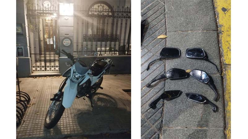 El segundo hecho ocurrió cuando oficiales de la comisaría mencionada recorrían la zona de Charcas y Fitz Roy, donde observaron a un sujeto efectuando la misma maniobra: manipulando los espejos de un motovehículo.