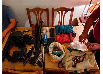 Policía de la Ciudad detuvo a un violento sujeto que tenía un arsenal en su casa, el individuo le había disparado a un transeúnte que caminaba con su perro. Tras una investigación policial se estableció su paradero y al detenerlo encontraron en su vivienda una gran cantidad de armas de fuego, cuchillos, municiones y credenciales.