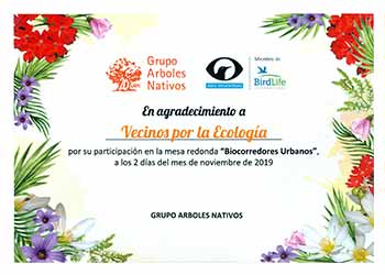 El sábado pasado se realizo la jornada de festejo 20 años del Grupo Arboles Nativos, cuya sede está ubicada en Matheu 1248, allí funcionan las oficinas administrativas, la Escuela Argentina de Naturalistas y la biblioteca Guillermo H. Hudson, en la jornada hubo charlas, mesa redonda, talleres, recorrida por el vivero, allí asistió la agrupación Vecinos por la Ecología de la Comuna 12, quienes agradecen al Grupo de Árboles Nativos de Aves Argentinas por su apoyo y reconocimiento en la mesa redonda sobre "Biocorredores urbanos".
