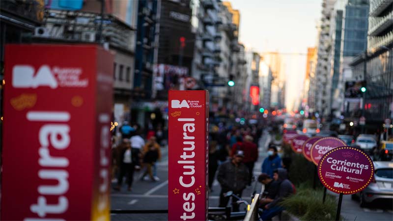 Organizado por el Ministerio de Cultura de la Ciudad de Buenos Aires y la Asociación de Amigos de la Calle Corrientes, continúa la segunda edición de Corrientes Cultural, el ciclo que impulsa la reactivación de la emblemática calle Corrientes. Vecinos y turistas disfrutan de manera gratuita de propuestas culturales de teatro, música, artes visuales, letras, humor y danza. Cada sábado y domingo hay una activación diferente frente a teatros, bares, restaurantes, pizzerías y disquerías de la calle de las marquesinas.