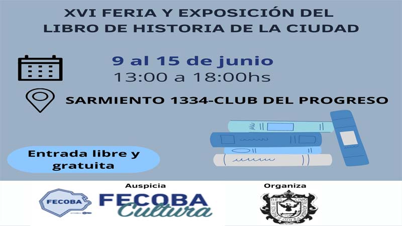 FECOBA Cultura invita a participar de la XVI Feria y Exposición del Libro de Historia de la Ciudad, la Federación de Comercio e Industria de la Ciudad de Buenos Aires (FECOBA), a través de su Secretaría de Cultura a cargo de Mabel Cipollini, invita a sus entidades asociadas a participar de la XVI Feria y Exposición del Libro de Historia de la Ciudad, que tendrá lugar entre el 9 y el 15 de junio, de 13 a 18 horas, en la sede del Club del Progreso sita en calle Sarmiento 1334, CABA.