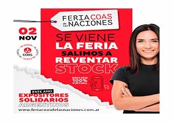 Del 2 de noviembre al 8 de diciembre llega 100 % virtual la feria más esperada, la Edición 43° de la Feria COAS de las Naciones, la dirección para ingresar al mega shopping solidario es en la página: feriacoasdelasnaciones.com.ar