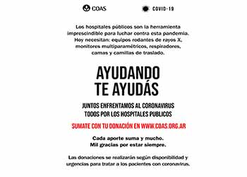 Las donaciones pueden hacerse en la página web: coas.org.ar #AyudandoTeAyudás #QuedateEnCasa #COAS #Solidaridad #HospitalesPublicos.