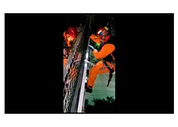 Al llegar al lugar, en horas de la madrugada, los oficiales subieron hasta el último piso, y descendieron con sogas hasta ingresar al departamento del anciano, quien había quedado en la bañadera sin poder movilizarse.
