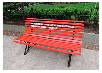 El lunes a las 13.30hs se colocará uno de los bancos en el hall de la sede comunal 13, Avenida Cabildo 3067, junto con la frase: "En memoria de todas las mujeres asesinadas por quienes decían 'amarlas'".