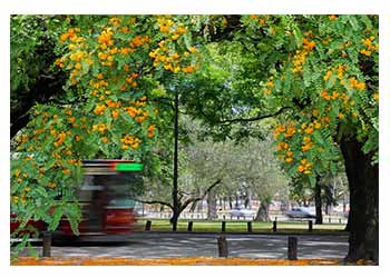 Desde finales de noviembre y durante los primeros días de diciembre, justo después del jacarandá, los más de 14 mil ejemplares de la tipa o Tipuana tipu que habitan en la Ciudad florecen. Sus flores se caracterizan por su color amarillo fuerte y su gran cantidad. Si bien el proceso de floración no es tan prolongado como el de otras especies, se destaca porque produce un incesante caer de flores que forman alfombras amarillas que generan un gran impacto visual en veredas, calles y parques.
